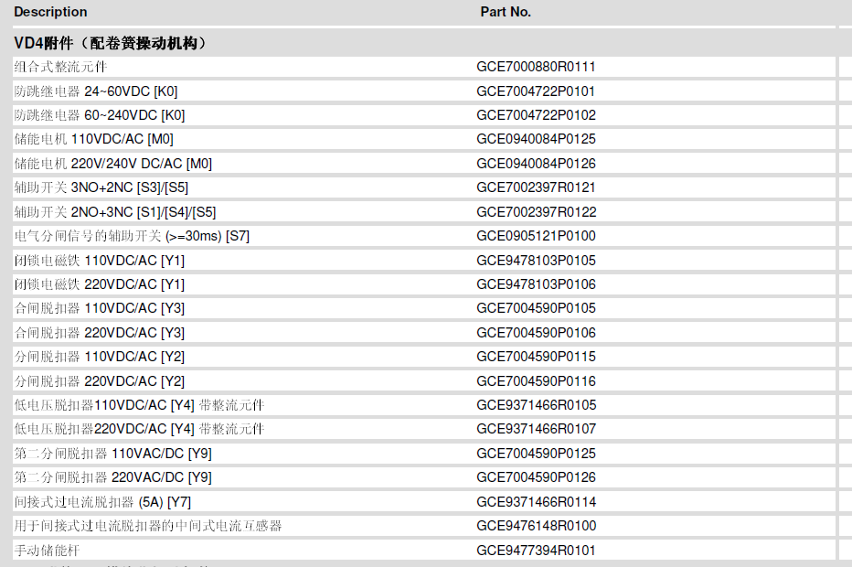 ABB VD4分闸线圈 TYPE EM30-K-002 GCE7004590P0116/220VDC/AC Y2分闸